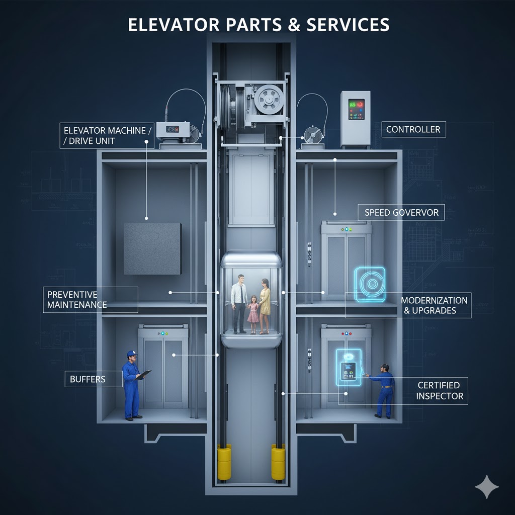 Konic Lift Parts Manufacturer is a national company providing advanced elevator components and turnkey lift solutions across India. Our vision is to redefine vertical transportation by combining innovation, precision engineering, and strict quality standards to deliver elevator systems that guarantee efficiency, durability, and safety for residential, commercial, and industrial applications.